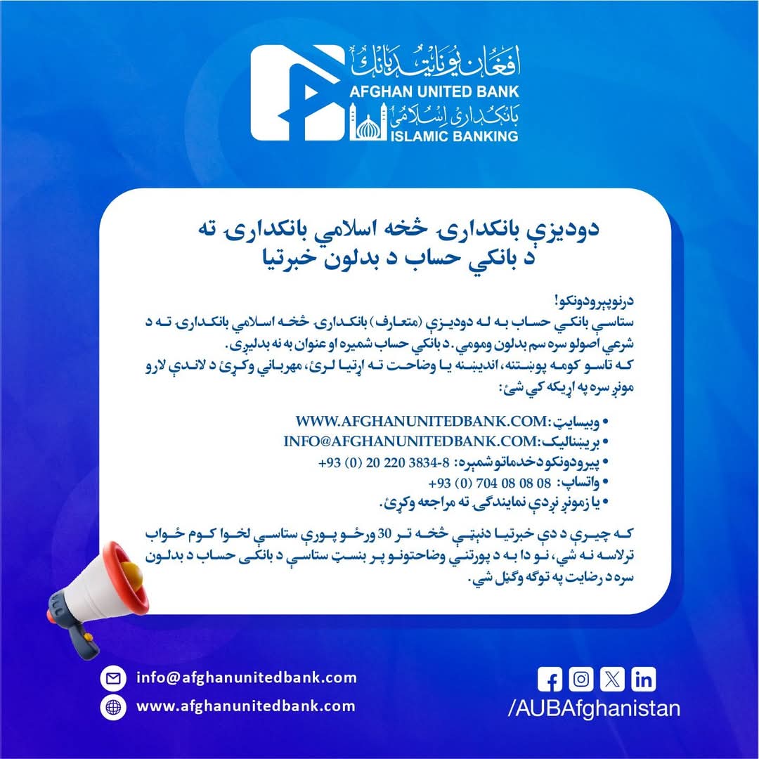 خبرتیا ! د افغان یونایټد بانک هغه پیریدونکی چی د لسو کلونه موده کی د خ…
